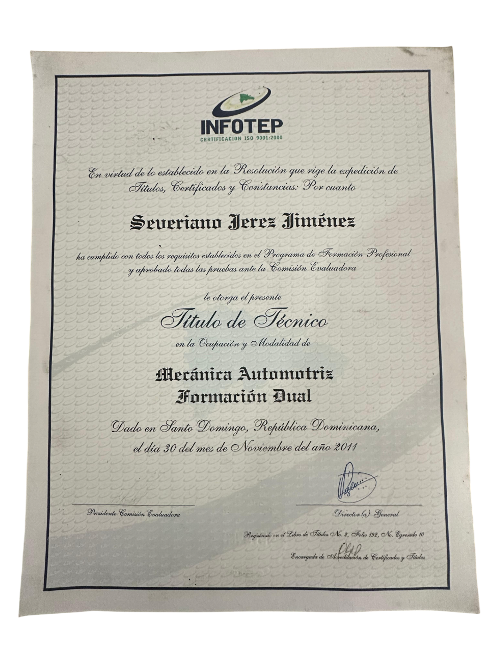 Contamos con certificación técnica en Mecánica Automotriz (Formación Dual) otorgada por INFOTEP, lo que respalda nuestra preparación profesional y compromiso con un servicio confiable, seguro y de alta calidad. Nuestra experiencia y formación nos permiten brindar soluciones eficientes y con altos estándares en cada trabajo.